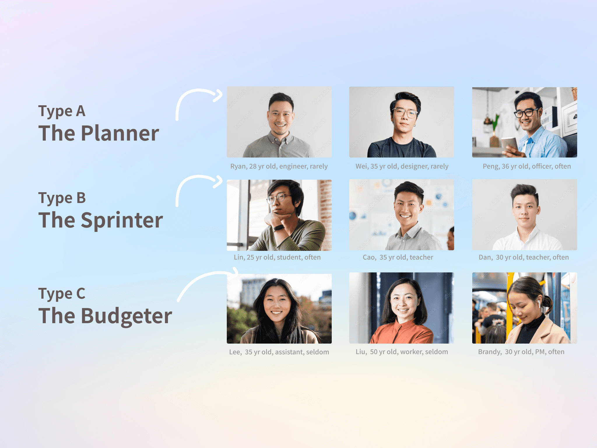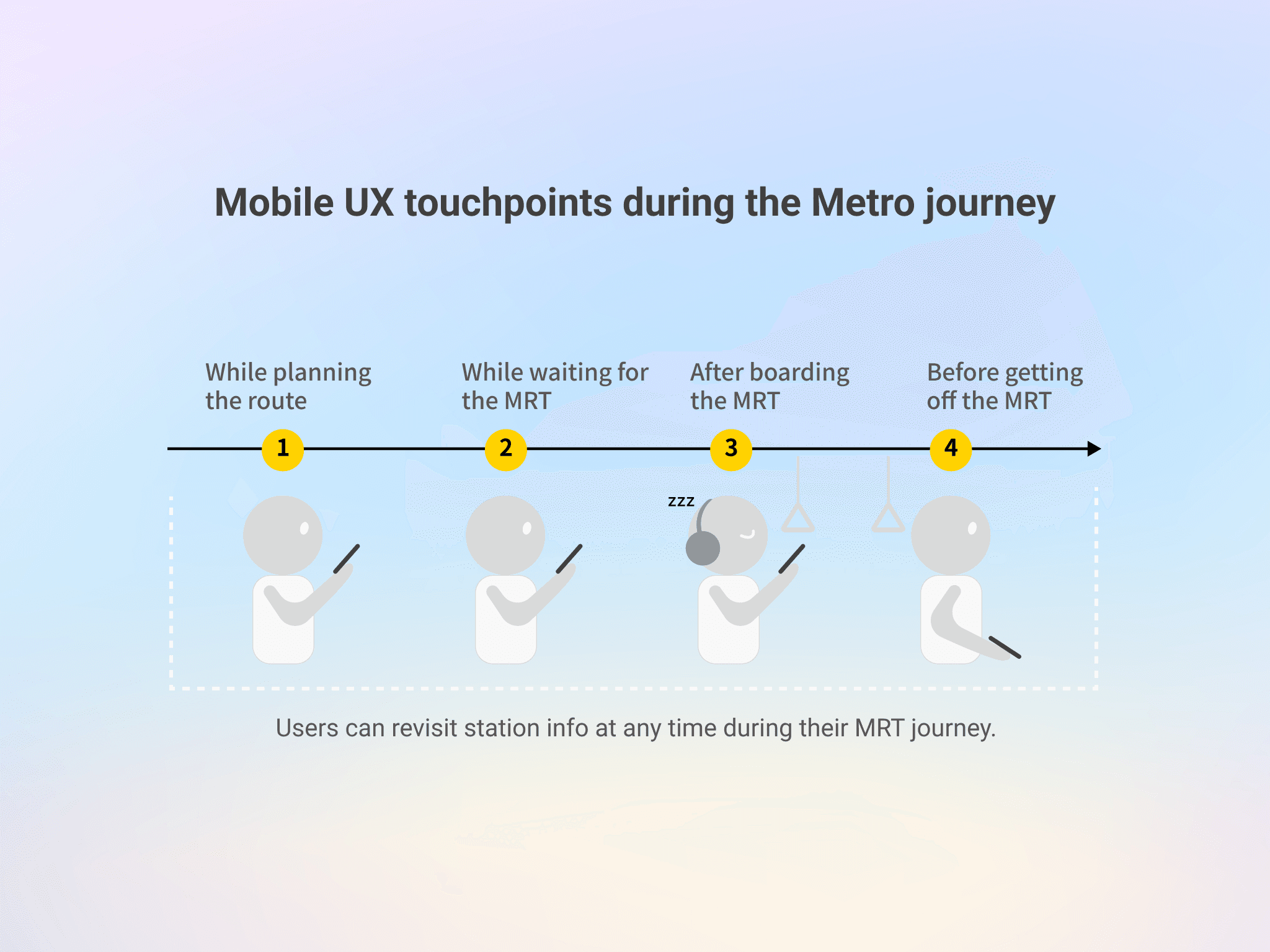 Field Research in the Real World — 9 People, 9 Ways of Using the Metro I didn’t sit in a room making guesses—we hit the streets. From an MRT online forum, I gathered 41 survey responses and conducted in-depth interviews with 9 participants (aged 19 to 50) from diverse backgrounds. What I discovered were three unique “metro personas”: A. The Planner – Mr. R (31, Web Engineer) Arrives 15 minutes early. Needs to know exactly when the next train is coming to stay on schedule. B. The Sprinter – Mr. Lin (25, Student) Always rushing. Prioritizes real-time updates because every second counts. C. The Budgeter – Ms. Lee (31, Medical Researcher) On a tight budget, she uses the map to explore which station is cheapest to enter—even if it means walking farther.